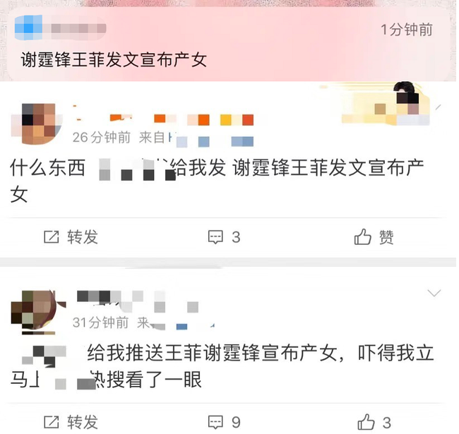 Thế nhưng trong ngày vui vẻ này, các phương tiện truyền thông đã bất ngờ đăng tải thông tin "Tạ Đình Phong và Vương Phi thông báo đã sinh con gái" khiến cho dân mạng chấn động. Thậm chí giới truyền thông còn đăng tải hình ảnh Vương Phi đi mua sắm, mặc một chiếc áo rộng thùng thình và để lộ vòng hai lớn bất thường như để chứng minh nàng "Thiên hậu" đang mang thai con của Tạ Đình Phong.