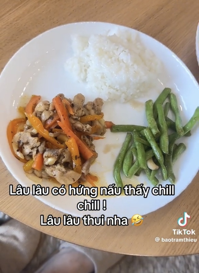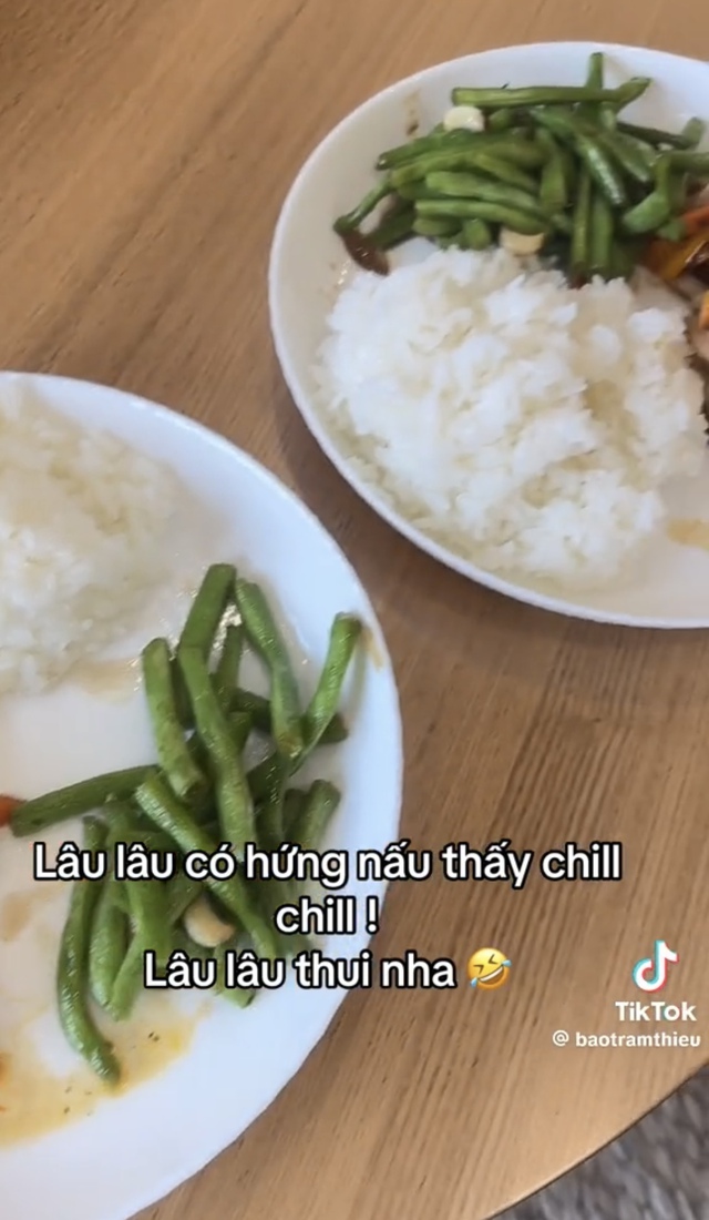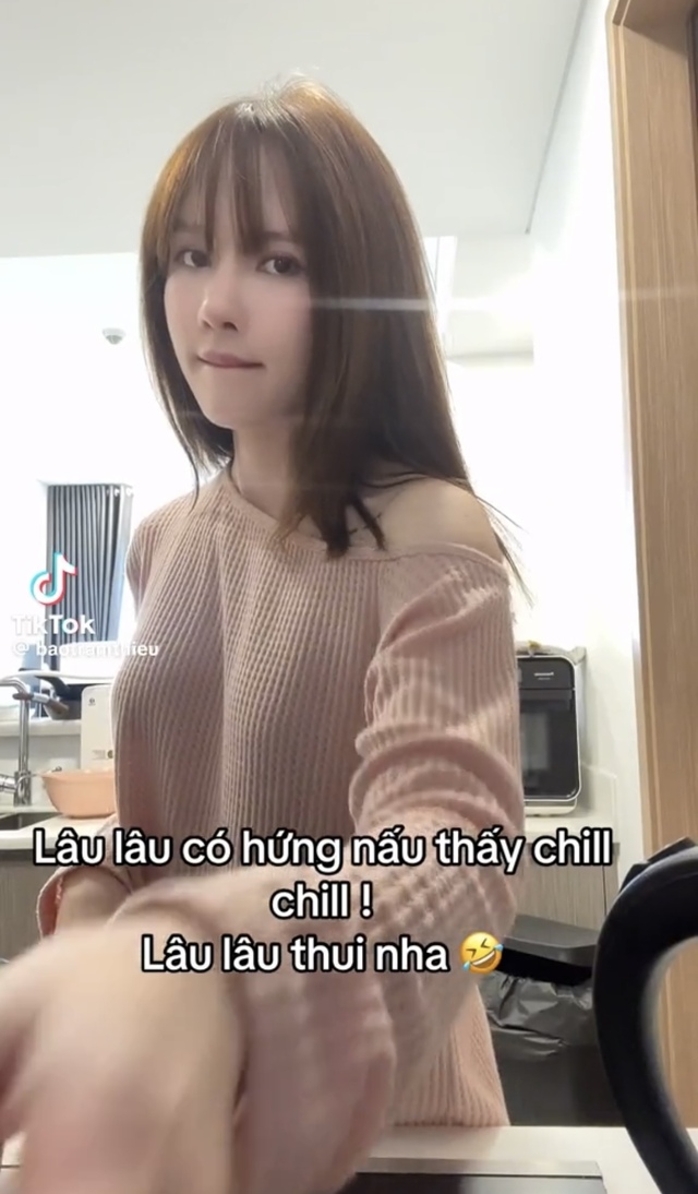 “Dạo này lười ăn hàng. Lâu lâu có hứng nấu thấy chill chill. Lâu lâu thôi nhé”, cô chia sẻ. Trong clip, Thiều Bảo Trâm hoá gái đảm, chăm chỉ tự tay vào bếp để chuẩn bị hai phần ăn. Cư dân mạng liền cho rằng cô đang nấu ăn cho bạn trai kém 10 tuổi.