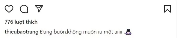 Tuy nhiên, đáng chú ý nhất chính là lời khẳng định chắc nịch của Thiều Bảo Trang giữa tin đồn hẹn hò với chồng cũ Lệ Quyên. Cụ thể, cô viết rõ: "Đang buồn. Không muốn yêu một ai".