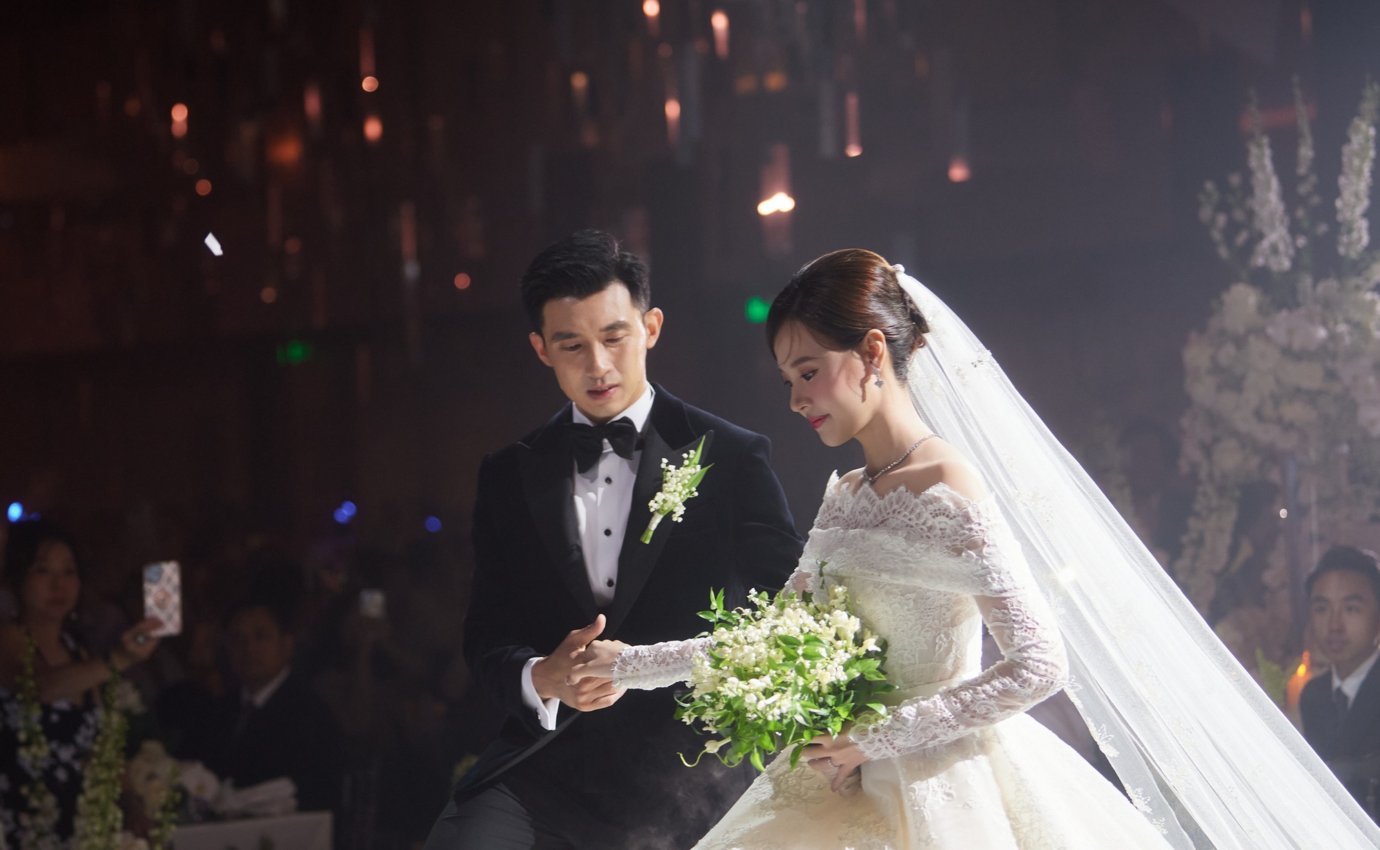 Đáp lại tình cảm của "tồng tài" Minh Đạt, ngay khoảnh khắc bước vào sân khấu, trước sự chứng kiến của hàng nghìn khách mời cùng gia đình, bạn bè, Midu bày tỏ: "Em đã dành cả thanh xuân của mình để chờ đợi, chờ một người đủ hiểu, đủ thương để cùng mình vượt qua những sóng gió.