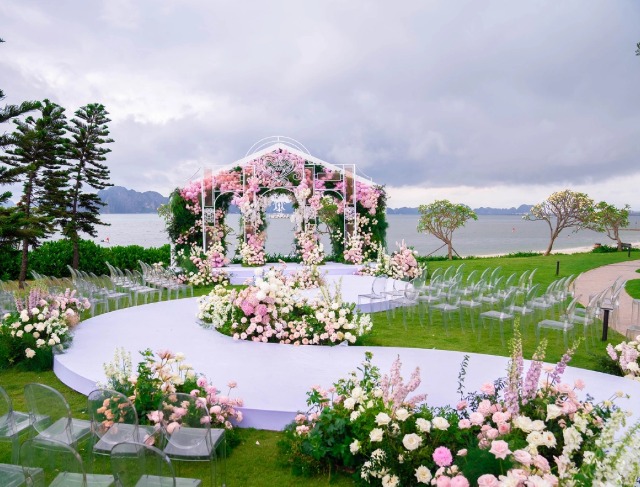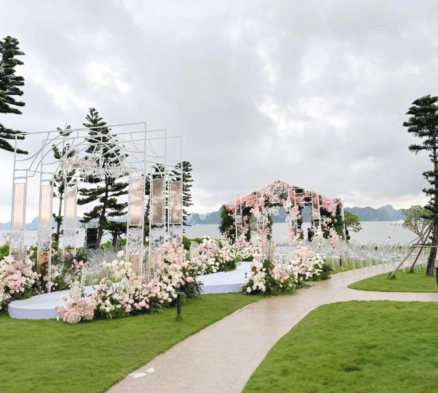 Được biết, khoảng 1 tiếng trước lễ cưới, dàn sao Vbiz đình đám đã lần lượt có mặt tại Quảng Ninh, gồm: Diễn viên Lý Nhã Kỳ, Diệu Nhi, ca sĩ Thiều Bảo Trâm, Văn Mai Hương, Myra Trần, Vương Anh Tú, Lê Việt Anh, stylist Lê Minh Ngọc, nhà thiết kế Hứa Lê Đức Anh.