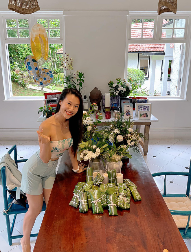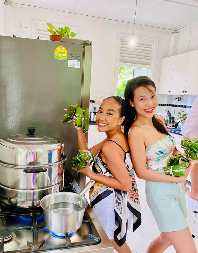 Vì tình hình dịch bệnh Covid-19 diễn biến phức tạp nên nhiều nghệ sĩ nơi xứ người không thể về quê hương thường xuyên. Dẫu vậy, dàn nghệ sĩ Vbiz vẫn gặp gỡ để cùng tổ chức bữa tiệc nho nhỏ nhưng vô cùng ấm áp. Trên trang cá nhân, MC Hoàng Oanh cũng thích thú chia sẻ hình ảnh nấu ăn cùng Thu Minh, siêu mẫu Bằng Lăng, Đoan Trang tại Singapore đính kèm dòng trạng thái: "Bánh tét chuối đậu, nhớ quê nhà. Khi về Việt Nam là em đã biết nấu ăn kha khá cho bố mẹ và gia đình rồi. Cám ơn các chị thật nhiều. Yêu thương, biết ơn và trân trọng mối duyên lành của chị em mình. Phụ nữ nên có nhau và yêu thương nhau thiệt nhiều các chị em ơi".