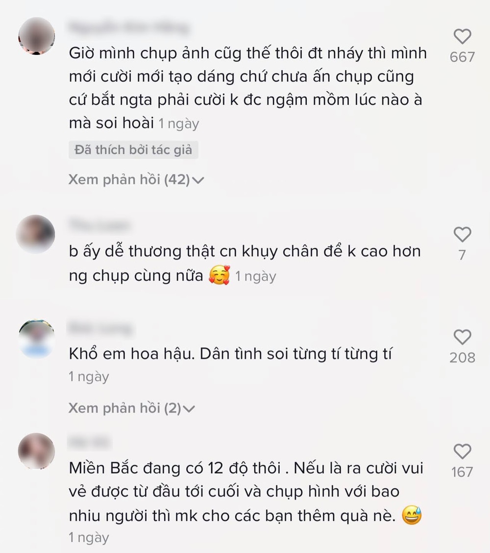 Bên cạnh đó, nhiều cư dân mạng cũng “soi” ra người đẹp xứ Thanh còn có hành động khá tinh tế. Theo đó, Đỗ Thị Hà đã chủ động khuỵu chân, không chỉ giúp việc chụp ảnh dễ dàng hơn mà còn làm người chụp cùng bớt tự ti. Qua đây, một số khán giả cũng mong muốn các “thám tử mạng” bớt “soi” nàng hậu 10X này.
