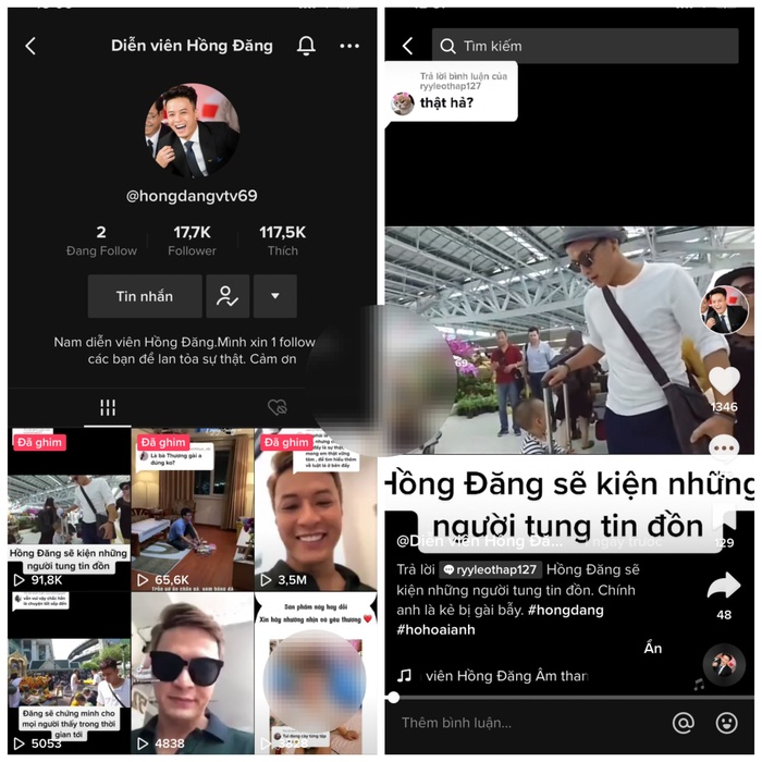 Những nội dung trên đều xuất phát từ tài khoản TikTok có tên "Diễn viên Hồng Đăng". Tuy nhiên nhiều người ngay lập tức phát hiện loạt video đều có dấu hiệu cắt ghép, vì diện mạo của nam diễn viên hoàn toàn khác với hiện tại: "Các video cắt ghép, nói chuyện chả liên quan gì với câu hỏi", "Nó lồng live Facebook vào TikTok đó", "Ôi nể mấy admin này thiệt, nể mấy đứa tin là thật nhiều hơn"... Ngoài ra, trong một số video dễ dàng nhận thấy hình ảnh hồi còn nhỏ của con gái Hồng Đăng.