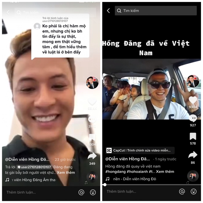 Mới đây trên nền tảng TikTok bỗng xuất hiện một số video có mặt của Hồng Đăng. Trong các video trên đều kèm theo một số dòng chú thích là: "Hồng Đăng sẽ trở lại. Hãy tin tưởng mình”, “Hồng Đăng sẽ khởi kiện những người tung tin đồn, chính anh là kẻ bị gài bẫy”, “Hồng Đăng cần một lời xin lỗi"...
