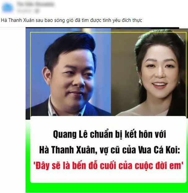 Mới đây, tin đồn "Quang Lê sắp cưới Hà Thanh Xuân" được chia sẻ nhiều trên các diễn đàn mạng xã hội. Nguyên nhân là bởi cặp đôi thân thiết "như hình với bóng", luôn xuất hiện cùng nhau trong các sự kiện, buổi tiệc thân mật với bạn bè. Vì thế, một số dân mạng tin tưởng vào thông tin trên và bình luận chúc phúc hai ca sĩ.