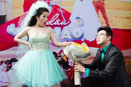 Chiều 27/1 tại TP HCM, Thúy Nga giới thiệu series hài ca nhạc Cô dâu đại náo. Chị xuất hiện với tạo hình cô dâu trong bộ áo xanh ngọc, khoe dáng hài hước bên đồng nghiệp Chí Tài, Tiết Cương...