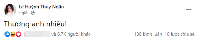 Mới đây, Thúy Ngân đã bất ngờ đăng tải dòng trạng thái thổ lộ tình cảm đầy ngọt ngào: "Thương anh nhiều!".