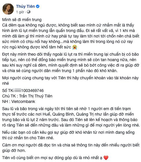 Đáng chú ý, dưới phần bình luận, có netizen đã đăng tải dòng viết gây xôn xao về nghi vấn Thủy Tiên sử dụng 3 tài khoản ngân hàng cho việc kêu gọi tiền từ thiện.