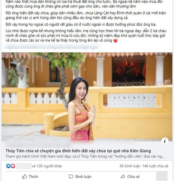 Vào thời điểm đó, cô còn năn nỉ đòi mẹ may 3 bộ đồ để kỷ niệm lần đầu được ăn tân gia nhà mới. Chưa kể, Thủy Tiên trước đó từng khoe mẹ của mình đã cứu trợ miền Tây mấy chục năm trước, đi tặng gạo và phát nhu yếu phẩm cho người nghèo.