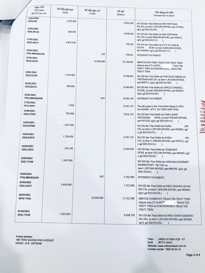 Tiên khẳng định chỉ dùng và thông báo bằng duy nhất 1 STK XXX746 để kêu gọi từ thiện tại miền Trung. Tài khoản đuôi XXX812 là tài khoản visa của Tiên, Tiên đã sao kê từ 11/10/2020 đến 10/04/2021 up lên post này để chứng minh là trong suốt thời gian kêu gọi miền Trung Tiên không hề kêu gọi bằng STK này, không có bất cứ giao dịch chuyển tiền ủng hộ miền trung nào vào STK này hết ạ.