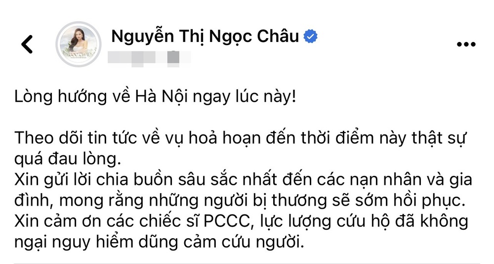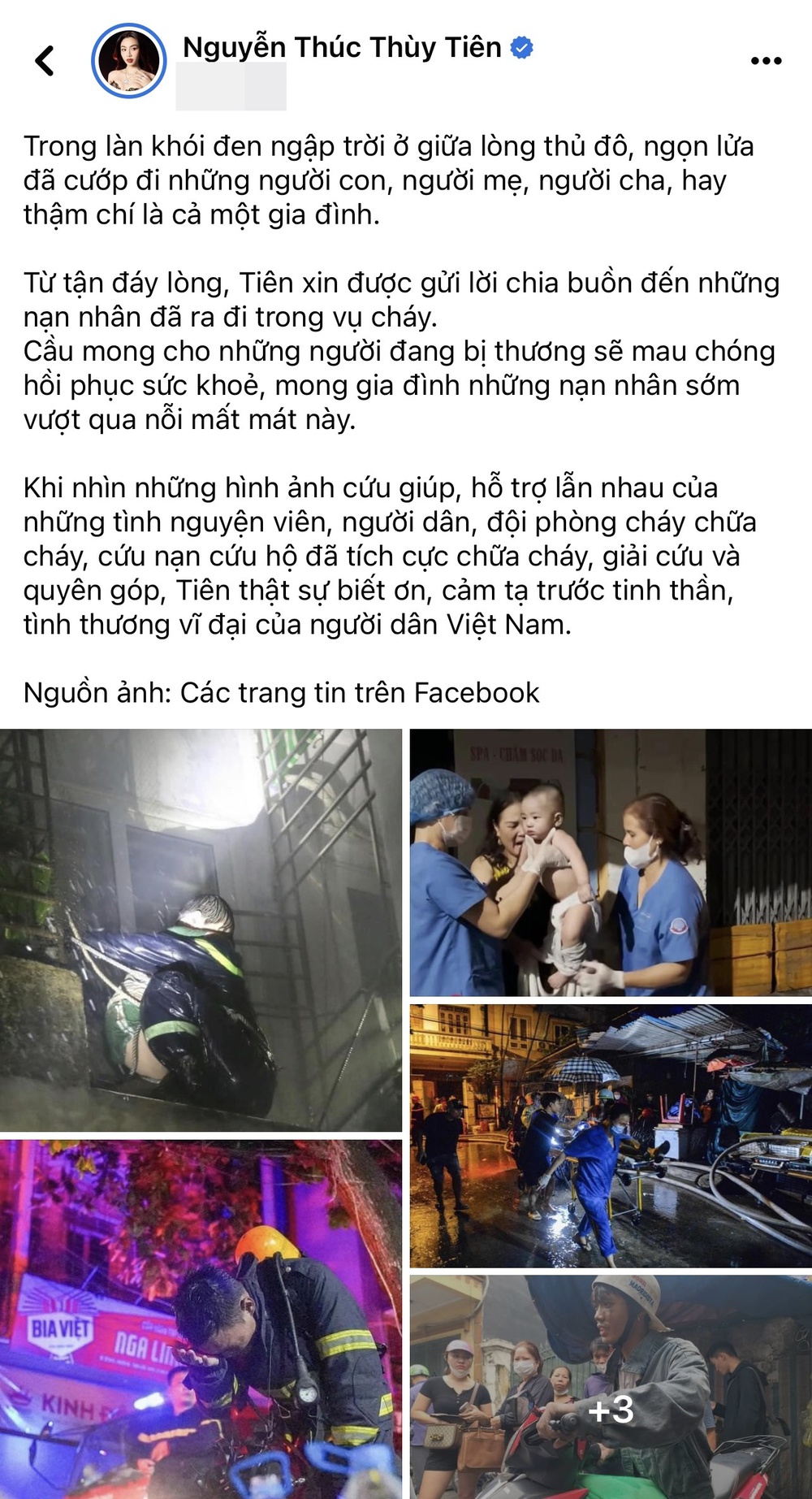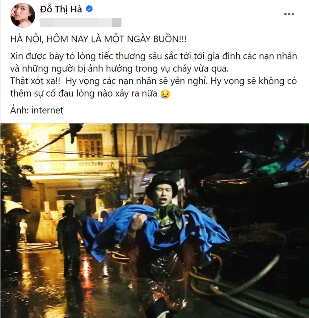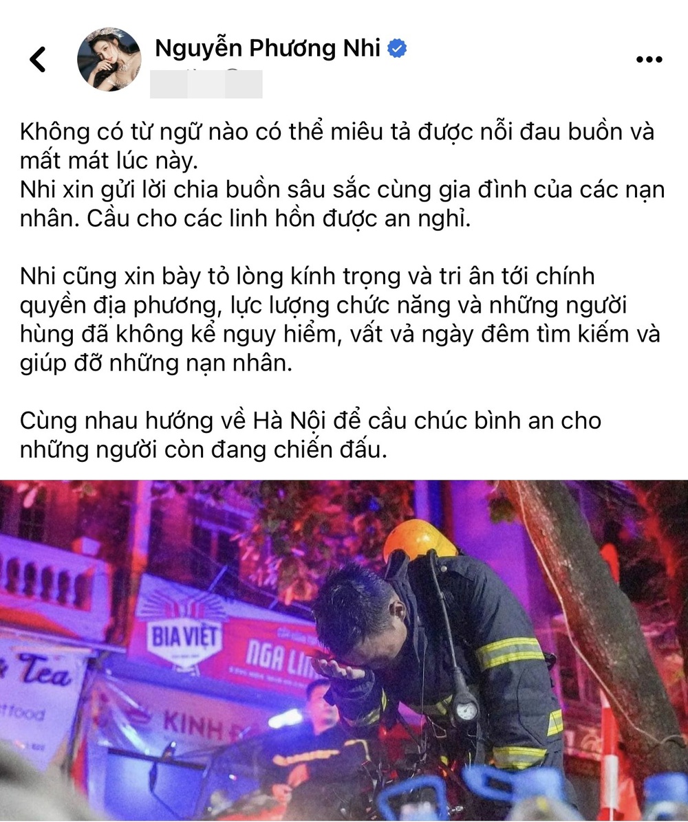 15/09/2023 13:34Thùy Tiên cùng dàn hậu Việt đau xót chia buồn với nạn nhân vụ cháy chung cư mini tại Hà Nội