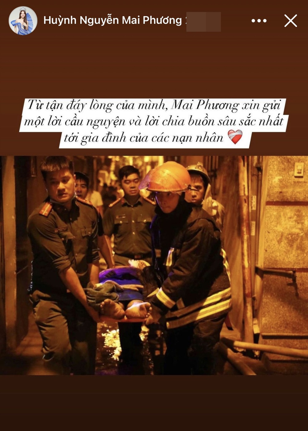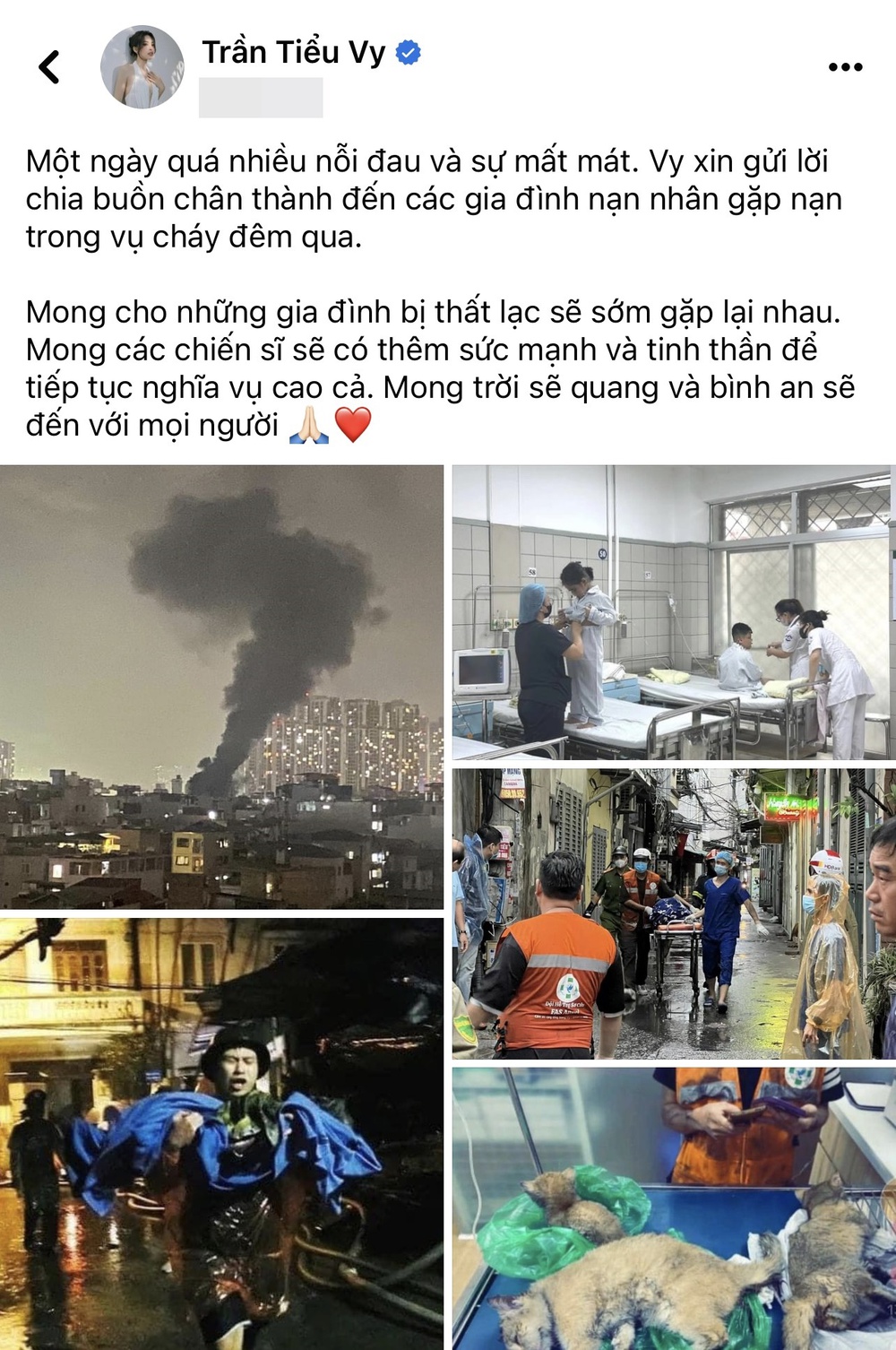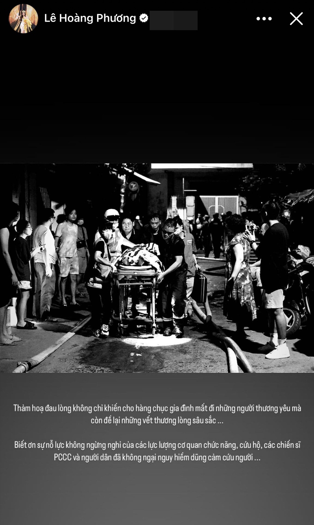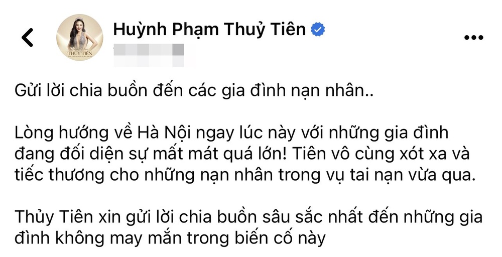 15/09/2023 13:34Thùy Tiên cùng dàn hậu Việt đau xót chia buồn với nạn nhân vụ cháy chung cư mini tại Hà Nội