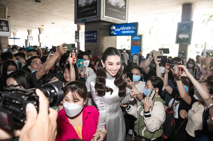 Có mặt tại sân bay, Hoa hậu Hòa bình Quốc tế 2021 - Nguyễn Thúc Thùy Tiên lựa chọn trang phục áo dài truyền thống nền nã để chào đón đoàn khách quốc tế. Sự tinh tế chứa đầy tinh thần dân tộc này nhận được nhiều lời khen ngợi từ fan hâm mộ. Fan còn thích thú khi hình ảnh Thùy Tiên đưa đón ông Nawat bằng chiếc xe máy rất dễ thương.