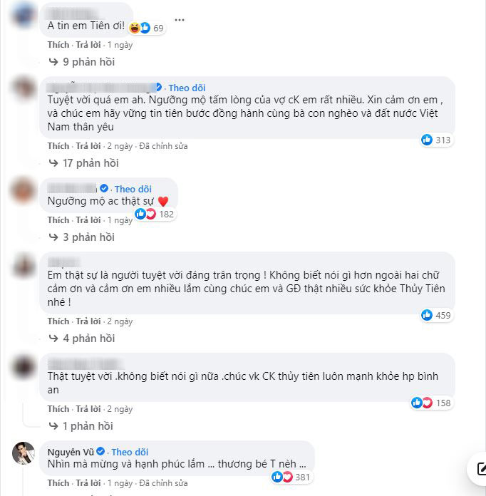Cách giải thích chi tiết, cặn kẽ cùng lời khẳng định bản thân đã đến tận nơi quan sát tình hình của Thủy Tiên nhanh chóng nhận được sự đồng cảm và ủng hộ của khán giả. Nhiều lời khen ngợi, động viên đã được để lại bên dưới bài đăng của cô, đa số mọi người đều thể hiện sự xúc động và ngưỡng mộ trước tấm lòng của nữ ca sĩ, đồng thời khuyên cô đừng để những ý kiến tiêu cực ảnh hưởng xấu đến sức khỏe tinh thần của mình.