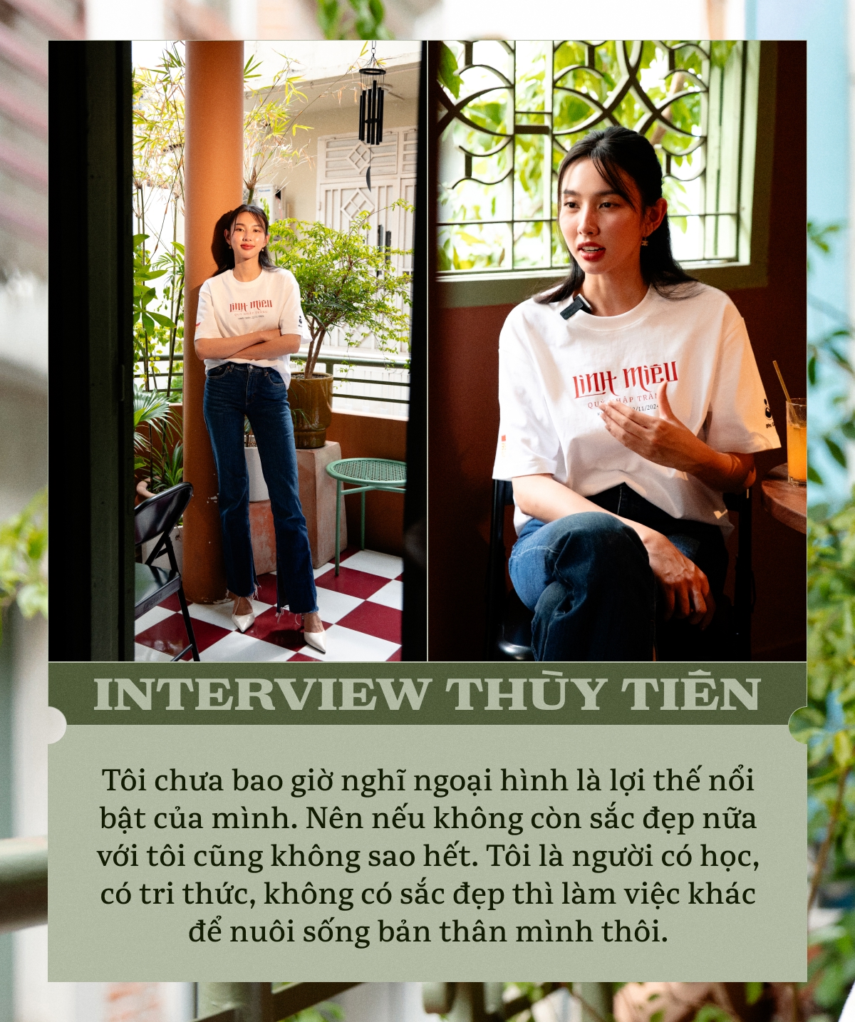 Thực ra tôi nghĩ tới tận bây giờ, sắc đẹp vẫn không phải lợi thế của mình. Lúc tôi đăng quang, tôi bị chê rất nhiều về ngoại hình, răng hô rồi rất nhiều thứ. Từ trước đến giờ, tôi chưa bao giờ nghĩ ngoại hình là lợi thế nổi bật của mình. Nên nếu không còn sắc đẹp nữa với tôi cũng không sao hết. Tôi là người có học, có tri thức, không có sắc đẹp thì làm việc khác để nuôi sống bản thân mình thôi. Có thể thu nhập không cao như làm trong showbiz để chăm lo cho gia đình nhưng riêng việc tự lo cho bản thân cũng là điều hỗ trợ lớn với gia đình rồi.