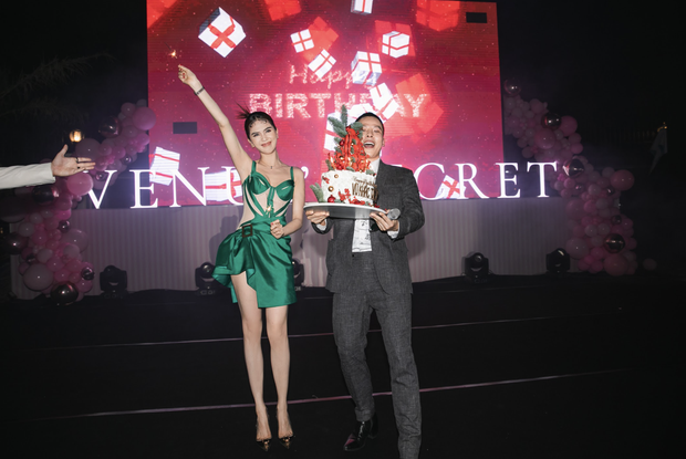 Ngoài sự tham gia của Ngọc Trinh, tiệc sinh nhật của "ông trùm Venus" còn có sự tham gia của ca sĩ Lệ Quyên, Cường Seven... Vẫn giữ vững phong độ của mình, Ngọc Trinh diện trang phục màu xanh lá, được thiết kế hết sức táo bạo, khoe trọn vóc dáng mượt mà của mình.