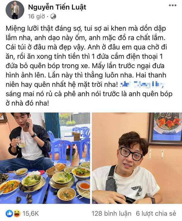 Cho đến sáng nay (6/3), Tiến Luật còn sang quán cafe của Ngô Kiến Huy để "ăn bù": "Lấy lại những thứ đã mất, anh sẽ còn qua nhiều lần nhé Ngô Kiến Huy (Lê Thành Dương)". Màn trêu đùa lầy lội của các nghệ sĩ khiến dân tình phấn khích và thi nhau tag (gắn thẻ) tên bạn thân vào như nhắc nhở điều quan trọng nhất khi đi ăn là phải mang tiền và đừng để quên trong xe.