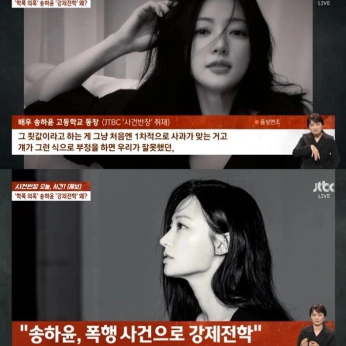 Đến thời điểm hiện tại, ngoài Lee Jin Ho thì kênh JTBC cũng đã 2 lần đăng tải vụ việc của Song Ha Yoon. Trong tập mới nhất của chương trình Scandal Supervisor, nữ diễn viên sinh năm 1986 bị cho là người cầm đầu vụ bạo lực học đường với 3 người cùng đánh 1 nữ sinh.