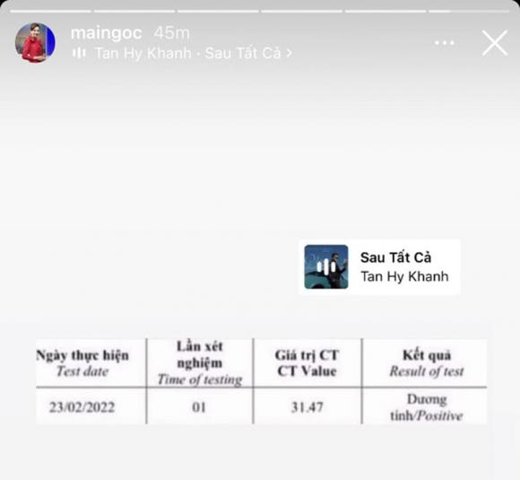 Tuy nhiên, chuyện gì đến vẫn phải đến. Chỉ 4 giờ sau chiếc story đầy vui vẻ này, Mai Ngọc đã hé lộ kết quả test PCR dương tính.