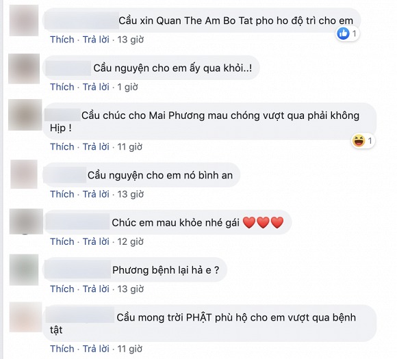 Những động thái này khiến nhiều người cho rằng tình hình sức khỏe của Mai Phương hiện tại không mấy khả quan nhưng vẫn đồng lòng cầu nguyện cô sẽ mạnh mẽ vượt qua cơn hoạn nạn.
