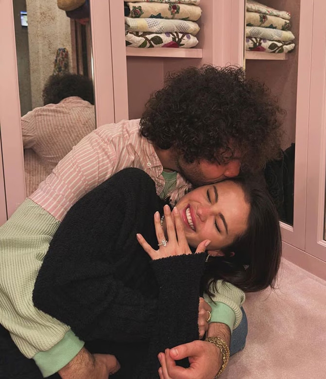 Selena Gomez đeo chiếc nhẫn đính kim cương, hạnh phúc trong vòng tay của Benny Blanco. Cô viết chú thích: "Forever begins now" (Mãi mãi, bắt đầu từ bây giờ). Bên dưới bài đăng, Benny bình luận (tạm dịch): "Đợi đã, đó là vợ tôi".