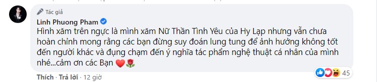 Thế nhưng, ngay khi gây xôn xao cả cõi mạng, tối cùng ngày (27/7), TiTi đã chính thức lên tiếng đính chính. Theo đó, cựu trưởng nhóm HKT phủ nhận chuyện xăm hình Nhật Kim Anh và cho biết: "Hình xăm trên ngực là mình xăm Nữ Thần Tình Yêu của Hy Lạp nhưng vẫn chưa hoàn chỉnh mong rằng các bạn đừng suy đoán lung tung để ảnh hưởng không tốt đến người khác và đụng chạm đến ý nghĩa tác phẩm nghệ thuật cá nhân của mình nhé... Cảm ơn các bạn!".