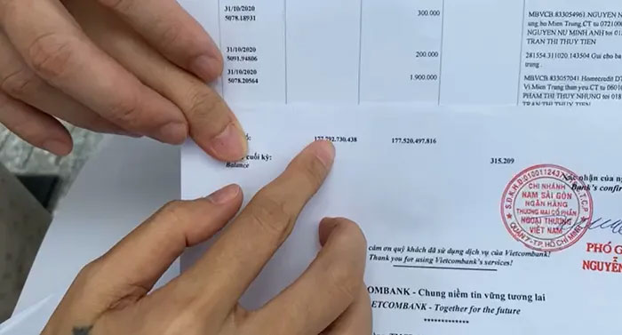 Cựu cầu thủ gốc Nghệ An cho biết: "Một vấn đề quan trọng, tất cả mọi người nói là sau khi kết thúc từ thiện, tài khoản của vợ chồng Tiên vẫn mở và có rất nhiều tiền chuyển vào. Thì bây giờ, để xác minh điều đó, vợ chồng Vinh đã in sao kê từ ngày 24/11/2020 (ngày kết thúc hành trình cứu trợ miền Trung - PV) đến ngày 24/2/2021, tổng số tiền trong tài khoản là 4.464.000 đồng.