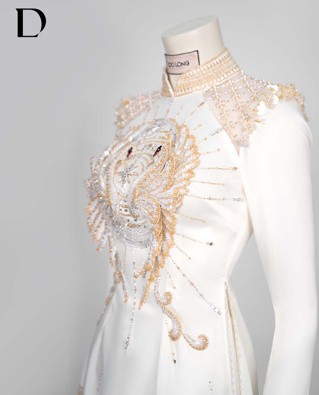 Không hổ danh là ngày trọng đại của con trai tỷ phú, thiếu gia Minh Hoàng mang hoa cưới kết hợp từ hoa sao trắng và linh lan - loài hoa đắt nhất thế giới, được nhiều cô dâu hào môn ưa chuộng để mang đến trao cho Phương Nhi. Chi tiết tiếp theo thể hiện sự hào môn chính là chiếc áo dài mà Minh Hoàng và Phương Nhi diện trong ngày vui. Theo đó, NTK Đỗ Long cùng ekip đã sử dụng hơn 200 viên đá Swarovski các loại được thêu đính kết trong hơn 100 giờ bởi 4 người thợ lành nghề nhất một cách đầy tâm huyết và tỉ mỉ.