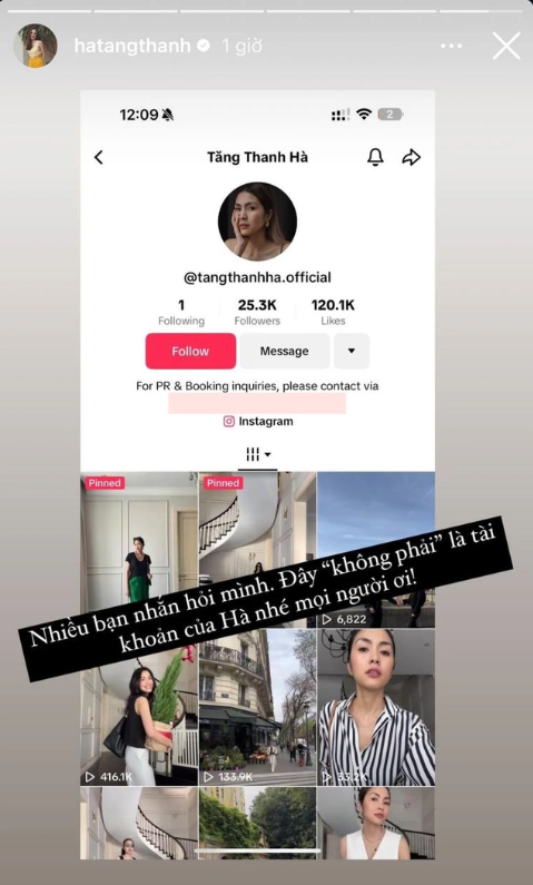Theo đó, tài khoản giả mạo này đã đăng tải lại những clip và hình ảnh seo chép từ trang cá nhân của Tăng Thanh Hà. Đáng nói hơn, trang mạo danh còn để thông tin liên hệ để đăng bài PR, quảng cáo một cách trắng trợn và không ít người đã bị lừa vì điều này.