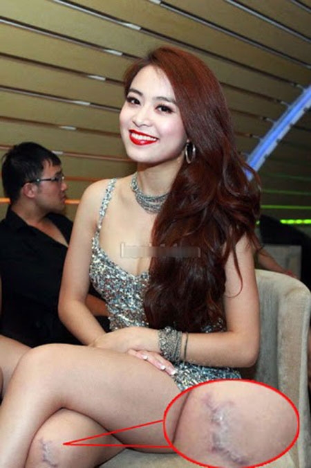 Một trong số những mỹ nhân sexy của làng nhạc Việt - Hoàng Thùy Linh cũng sở hữu đôi chân kém thon gọn với vết sẹo lồi sẫm màu khá lớn ở đầu gối. |