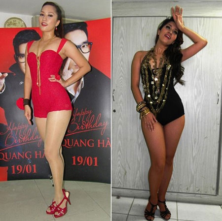 Tương tự Khánh Thi, "Chim công làng múa" Linh Nga cũng sở hữu đôi chân khá lớn khiến cô thường xuyên phải "giấu" chúng trong những chiếc váy dài. |