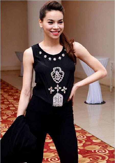 "Nữ hoàng giải trí" Hồ Ngọc Hà ghi điểm với vẻ gợi cảm và những bước nhảy cực nóng bỏng. Thế nhưng đôi vai thô và đôi tay gân guốc đã khiến sự hấp dẫn của cô giảm xuống. |