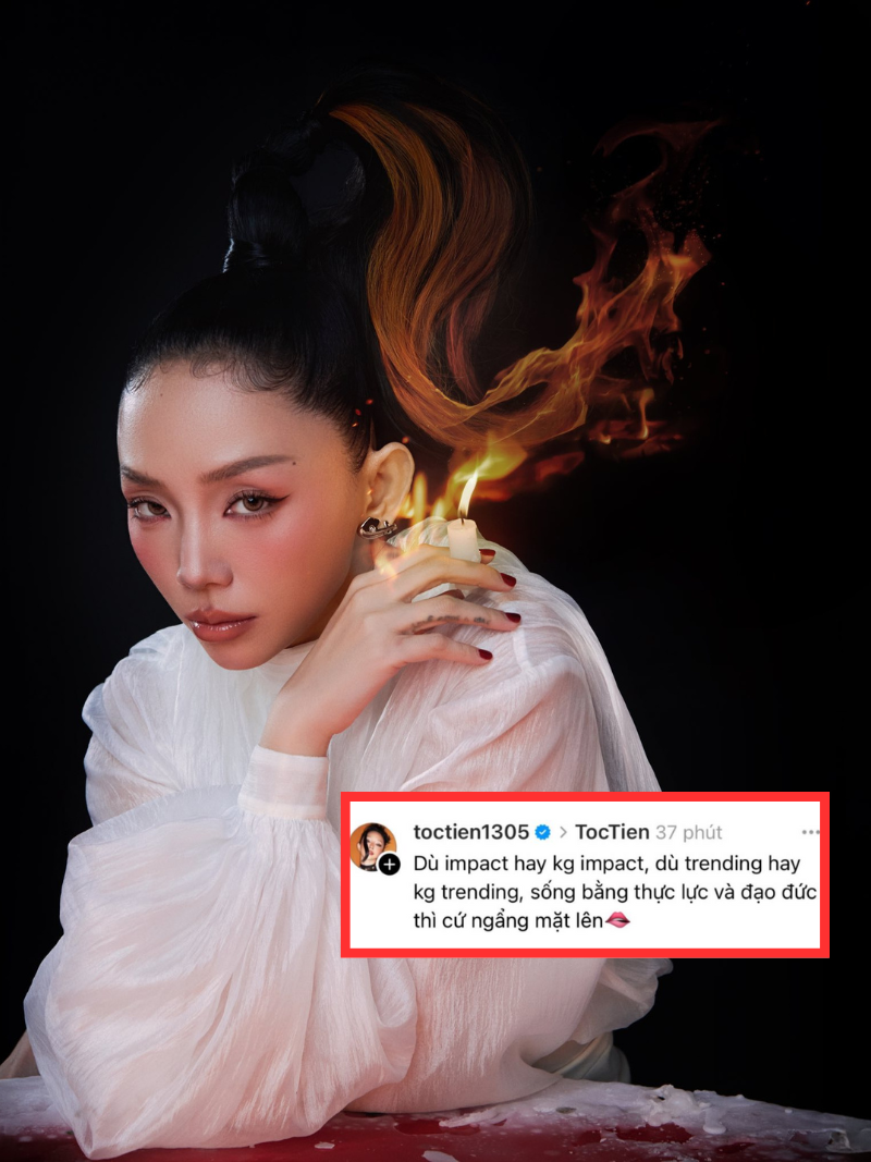 Chiều 17/6, Tóc Tiên khiến MXH nổi bão với bài đăng mới trên Threads. Giọng ca Ngày Mai bất ngờ cập nhật trạng thái như để "phản dame" antifan với nội dung: "Dù impact hay không impact, dù trending hay không trending, sống bằng đạo đức và thực lực thì cứ ngẩng mặt lên". Tóc Tiên nổi tiếng với tính cách thẳng thắn, không ngại va chạm. Đây không phải lần đầu nữ ca sĩ bày tỏ quan điểm mạnh mẽ trên mạng xã hội. Nhưng với bài đăng có phần gay gắt, có vẻ bức xúc như trên, Tóc Tiên vẫn khiến cư dân mạng tò mò đồn đoán.