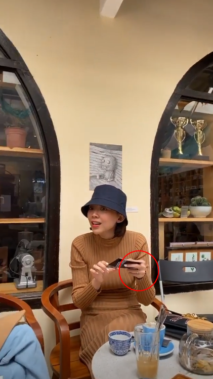 Trong đoạn clip mới được một người bạn đăng tải sáng nay, nữ ca sĩ diện váy len đơn giản, để mặt mộc, đang ngồi uống trà, nói chuyện với hội anh chị em thân thiết. Gương mặt của Tóc Tiên lộ rõ vẻ rạng rỡ, hạnh phúc nhưng điều dân tình chú ý nhất trong đoạn clip lại là chiếc nhẫn cô đeo trên ngón áp út. Đây chính là nhẫn cưới của Tóc Tiên và Hoàng Touliver.