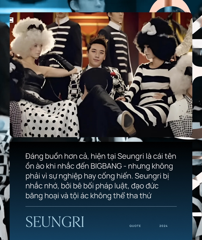 Đáng buồn hơn cả, hiện tại Seungri là cái tên ồn ào khi nhắc đến BIGBANG - nhưng không phải vì sự nghiệp hay cống hiến. Seungri bị nhắc nhớ, bởi bê bối pháp luật, đạo đức băng hoại và tội ác không thể tha thứ. Thời điểm Seungri bị truy tố năm 2019, fan đã vỡ tan một lần. Sau quá trình tố tụng, Seungri phải chịu trách nhiệm cho những gì mình làm, bản án đặt ra là 1 năm rưỡi tù giam. Nhưng với công chúng, đây vẫn là cái giá quá rẻ khi nhìn vào tấu trạng dài như sớ của Seungri.