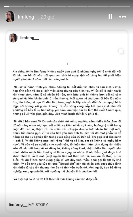 Cho đến chiều 15/5, LF tại tiếp tục đăng story với nội dung ẩn ý như sau: