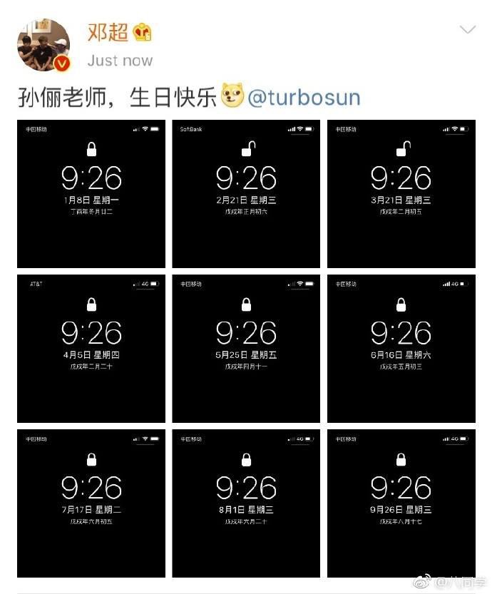 Nếu là một fan theo dõi cặp đôi đã lâu, ai cũng biết rằng Đặng Siêu chiều vợ hết mực. Anh không phải là người phô trương đem tặng vợ những món quà đắt tiền (Bởi vì anh không có tiền, bao nhiêu tiền kiếm được đều giao nộp hết cho Tôn Lệ cả rồi!). Đặng đội trưởng chính là kiểu người dùng những cách sáng tạo nhất, lãng mạn nhất biến chúng thành những kỉ niệm khó quên dành tặng vợ. Sinh nhật "Nương Nương", Đặng Siêu đã đăng tải 9 bức ảnh đều được chụp vào lúc 9 giờ 26 phút ( Tôn Lệ sinh ngày 26/9) vào các ngày khác nhau trong mỗi tháng với lời chúc ngắn gọn: "Cô giáo Tôn Lệ, chúc mừng sinh nhật!".