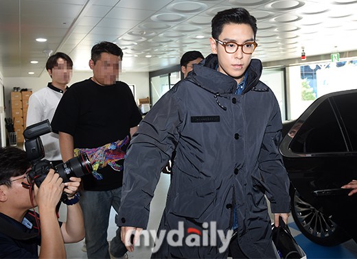 Xuất hiện tại trung tâm phục vụ cộng đồng, T.O.P diện bộ trang phục đời thường, được báo chí săn đón. Tuy nhiên nam rapper lại gây chú ý vì không có chút biểu cảm nào như mừng rỡ, vui vẻ mà trông khá nghiêm trọng, ánh mắt còn được nhận xét là khá buồn. Ngoài ra, fan còn tò mò không hiểu sao trên đôi môi của T.O.P lại có vết xước nhỏ như bị thương. Giờ đây sau khi xuất ngũ, nam rapper đình đám này sẽ phải đối mặt với tình trạng công ty náo loạn vì hết chủ tịch cũ lại đến cựu thành viên Big Bang dính cáo buộc môi giới mại dâm, hàng loạt nghệ sĩ bị nghi dính líu tới ma tuý.