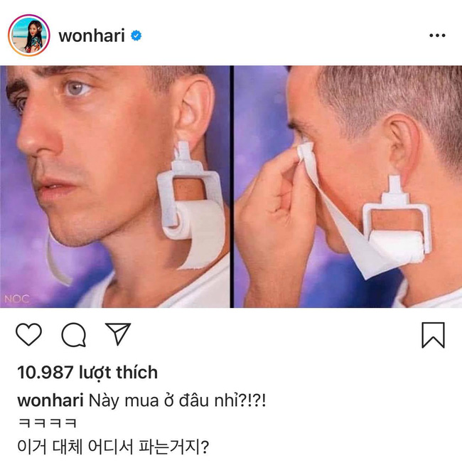 Cụ thể, giọng ca "Anh cứ đi đi" đã đăng tải hình ảnh một đôi khuyên tay có hình dạng độc đáo là cuộn khăn giấy, người đeo có thể dùng nó để lau nước mắt bất cứ lúc nào cực kỳ tiện lợi. Kèm theo bức ảnh, Hari Won còn đính kèm dòng chú thích: "Này mua ở đâu nhỉ?" như có ý định mua để tặng cho chồng.