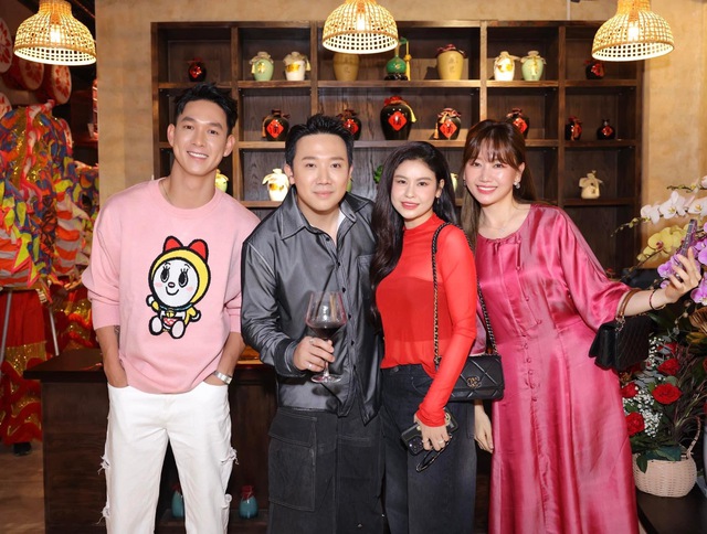 Hoạt động trong showbiz Việt nhiều năm, nam MC Trấn Thành có mối quan hệ thân thiết với nhiều sao nổi tiếng. Trong ngày khai trương nhà hàng vừa qua, đông đảo nghệ sĩ như ca sĩ Tóc Tiên, Trường Giang, Thu Minh, Anh Đức... đã tới chúc mừng vợ chồng Trấn Thành.