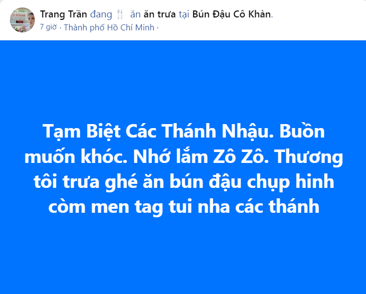Tiếp theo đó, cựu người mẫu cũng nói lời tạm biệt với những người bạn nhậu của mình và cho biết sẽ rất nhớ những buổi nhậu cùng mọi người ở Việt Nam. Bên dưới bình luận, nhiều bạn bè, người thân biết chuyện Trang Trần sang Mỹ cũng đã vào chúc cô thượng lộ bình an.