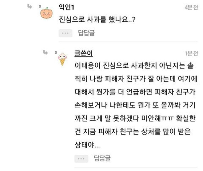 Bài đăng này còn chỉ ra thêm chuyện nạn nhân A gặp riêng Taeyong. Trên thực tế đây lại là cuộc gặp được chính phóng viên tờ Wikitree sắp xếp. Tin tức về cuộc gặp mặt này cũng được đưa lên từ lâu với tựa đề: "Taeyong đã gặp nạn nhân với sự chứng kiến của Wikitree. Taeyong thừa nhận tất cả lùm xùm quá khứ và xin lỗi".