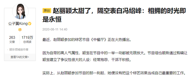 Trước đó, trong một video được studio phòng làm việc của Triệu Lệ Dĩnh đăng tải, người đẹp đã có những chia sẻ về quan điểm tình yêu. Đây là lần đầu tiên sau khi kết hôn với Phùng Thiệu Phong, Triệu Lệ Dĩnh có những chia sẻ của bản thân về tình yêu.