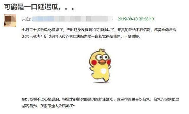 Khi dư luận vẫn chưa yên thì sáng nay (11/8), một bài đăng đã thu hút sự quan tâm của dư luận khi khẳng định Triệu Lệ Dĩnh đệ đơn ly hôn từ tháng 7, chỉ sau 4 tháng sinh con trai cho nhà họ Phùng vì phát hiện mình bị lừa dối. Ngay sau đó, bài viết này đã được xóa bỏ khiến cư dân mạng vô cùng hoài nghi. Người cho rằng nội dung bài viết là giả nên mới phải xóa đi. Kẻ khác thì lại đồn thổi là "không có lửa sao có khói".