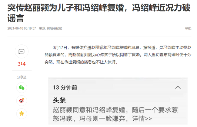 Cư dân mạng cảm thấy rất bất ngờ trước tin đồn này nhưng họ cho rằng Triệu Lệ Dĩnh và Phùng Thiệu Phong vốn không có những dấu hiệu của việc tái hôn như trang NetEase nói. Hiện tại Phùng Thiệu Phong đang bận rộn quay phim, theo hình ảnh được chụp lại thì nam diễn viên 43 tuổi trông rất phờ phạc và mệt mỏi, từ trạng thái này có thể thấy được anh không hề cùng Triệu Lệ Dĩnh quay lại với nhau.