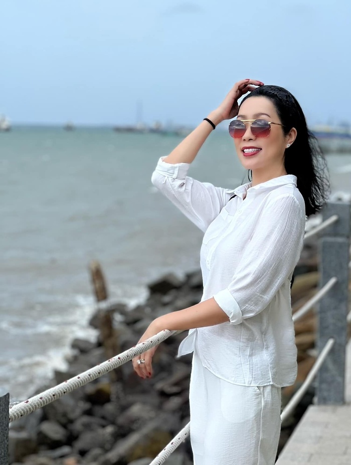 Mới đây, nghệ sĩ Trịnh Kim Chi chia sẻ trên trang cá nhân loạt ảnh đi du lịch Vũng Tàu cùng ông xã Võ Trấn Phương. Trong ảnh, Á hậu Việt Nam 1994 diện set đồ trắng trẻ trung, khoe sắc vóc tươi tắn bên bờ biển.