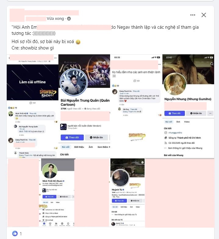 Mới đây, mạng xã hội xôn xao khi một nhóm kín quy tụ nhiều nghệ sĩ trẻ Vbiz lan truyền những thông tin nhạy cảm, dễ gây hiểu lầm. Nội dung trong nhóm này đa phần xoay quanh các vấn đề tình dục, các bài đăng thương xuyên xuất hiện những câu từ hết sức phản cảm, dung tục.
