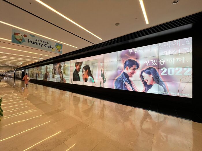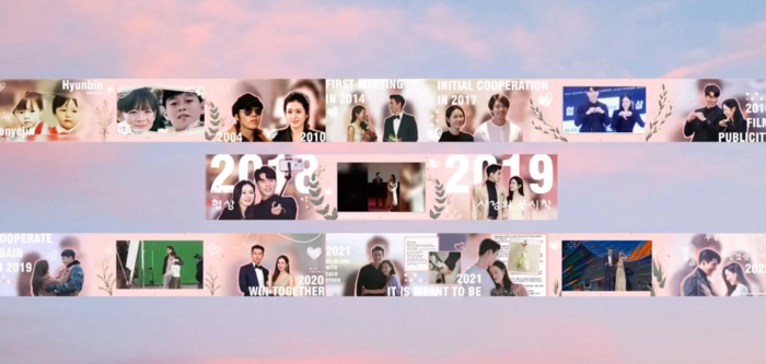 Cụ thể, người hâm mộ bộ đôi đã làm một chiếc biển quảng cáo dài 100m trong một trung tâm thương mại. Trên biển quảng cáo ghi lại những hình ảnh thân mật của cặp đôi từ khi còn nhỏ cho đến năm 2022. Đây được cho là món quà cưới mà hội yêu mến Bin - Jin dành tặng cho hai diễn viên.