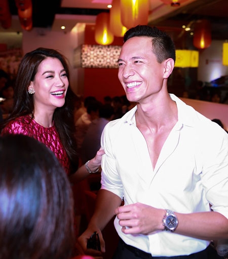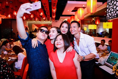 | Kim Lý và Trương Ngọc Ánh nhiệt tình chụp ảnh cùng các khách mời. |